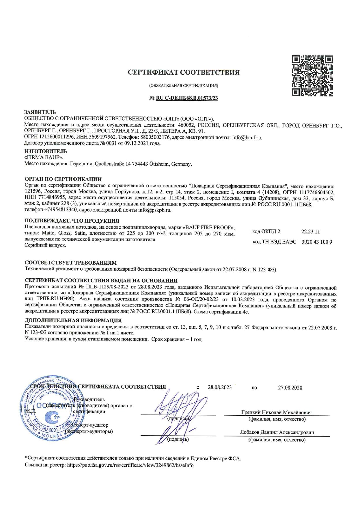- Пожарная безопасность: серия FirePROOF соответствует требованиям техрегламентов; материал не поддерживает горение при нормальной эксплуатации.