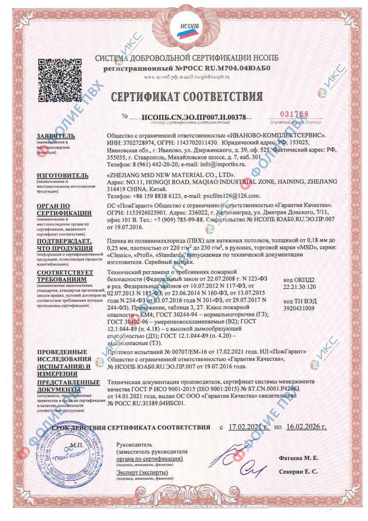 Оригинальные полотна MSD имеют фирменную маркировку на кромке и сопровождаются паспортом партии. При заказе вы вправе запросить подтверждение происхождения материала. Монтаж выполняется согласно рекомендациям производителя — с использованием сертифицированных профилей и закладных под светильники.