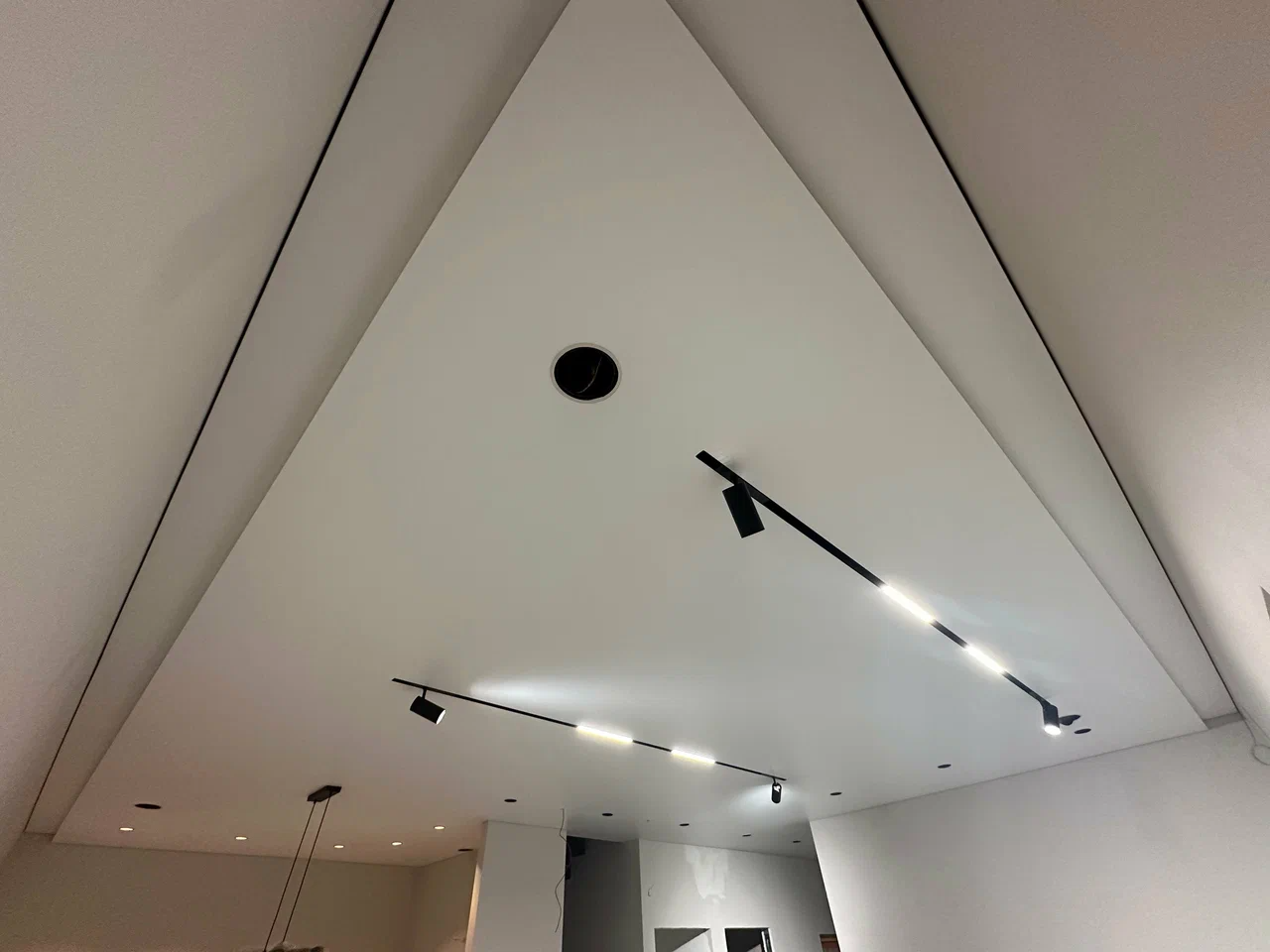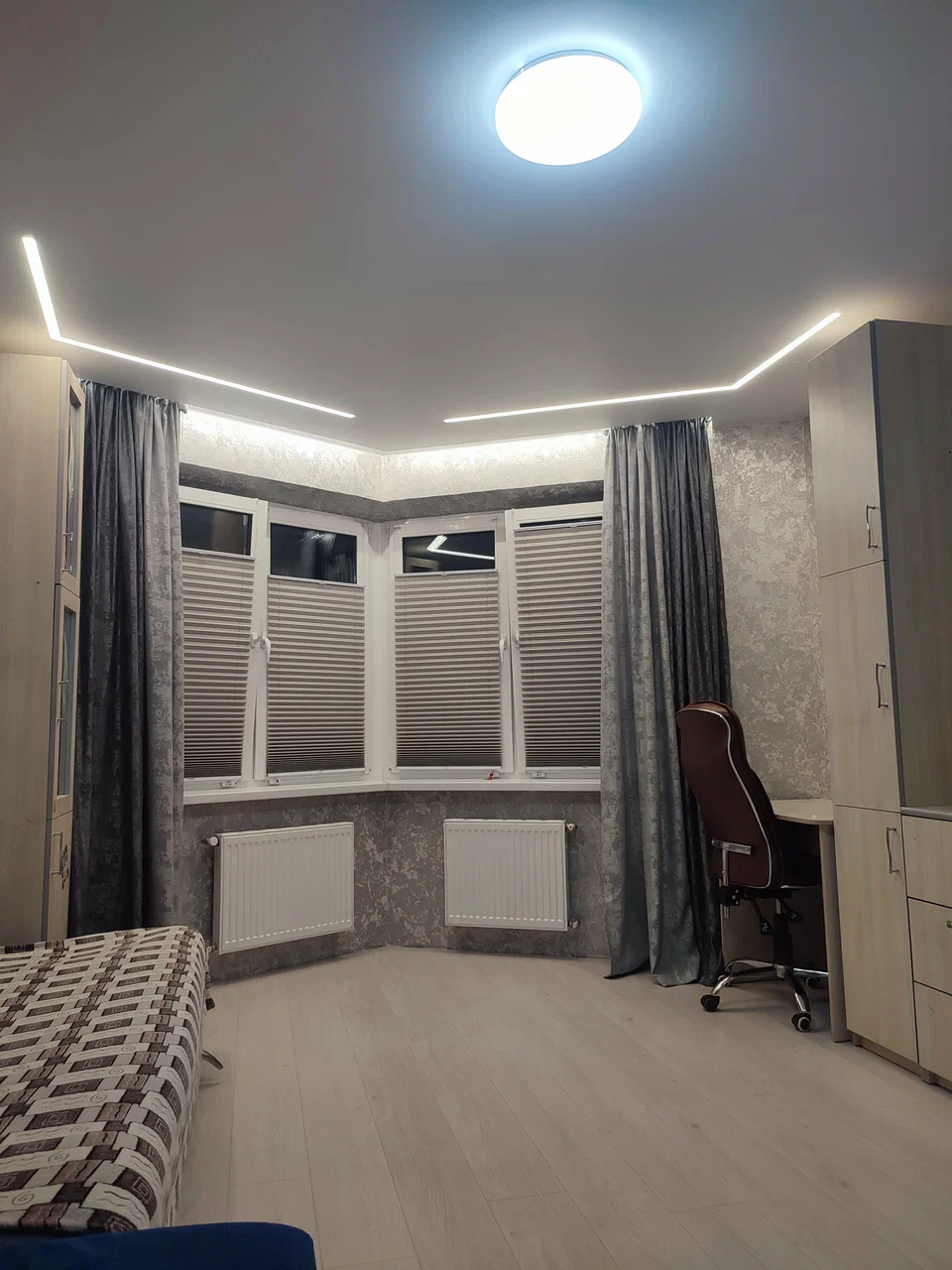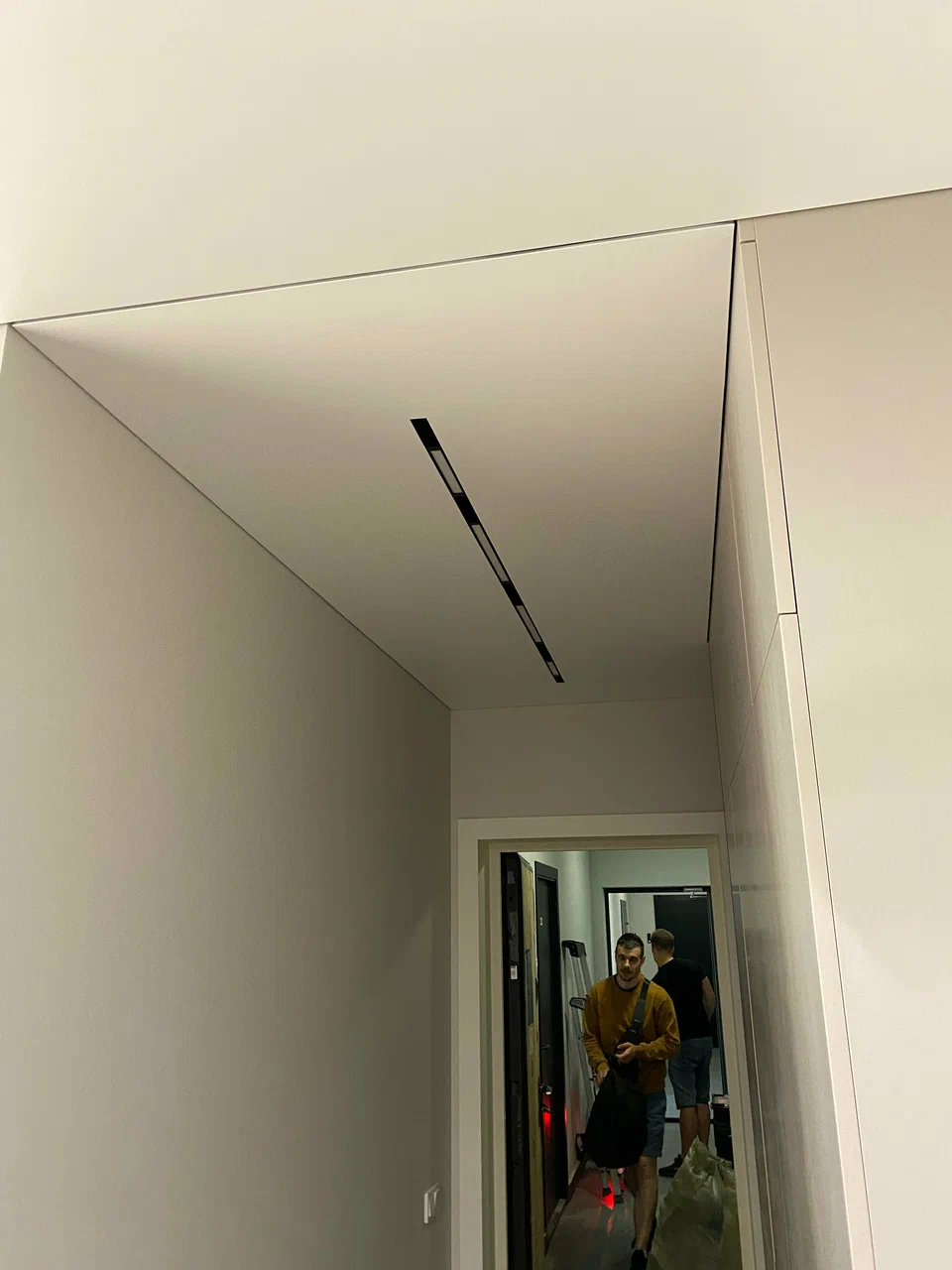 В день монтажа приехали Паша и Артём.Ребята сразу осмотрели комнату, уточнили что куда будет уходить, и приступили к работе.Работали аккуратно, без лишнего шума, хотя инструментов у них было довольно много.По ходу пришлось чуть изменить одно место под световую линию — в проекте смотрелось одно, а вживую по-другому, решили на месте.Договорился с ними по мелочам, они всё объяснили, почему так лучше.По цене вышло ровно как в договоре, без добавлений, что для меня важно, потому что был строгий бюджет.В итоге получилось нормально, ровно так, как я рассчитывал.Спасибо Эдуарду, Насте и ребятам за работу.