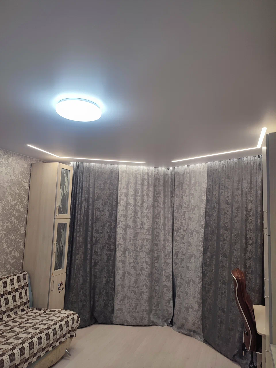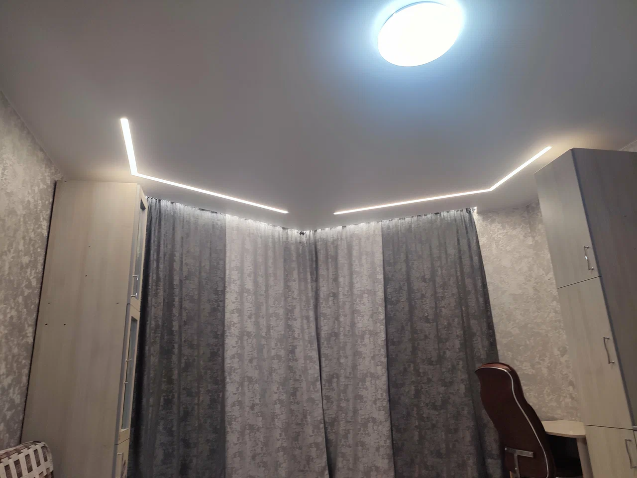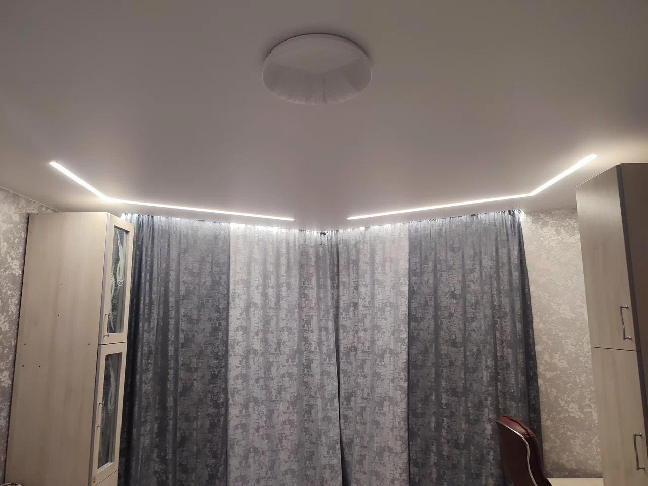 Отдельно хочу отметить беспроцентную внутреннюю рассрочку — для меня это оказалось очень удобным, потому что ремонт всегда требует дополнительных расходов. В итоге потолки получились ровные, аккуратные, световые линии лёгкие и аккуратно смотрятся в комнате. Результатом осталась довольна. Если дальше буду делать потолки — обращусь сюда же. Рекомендую.