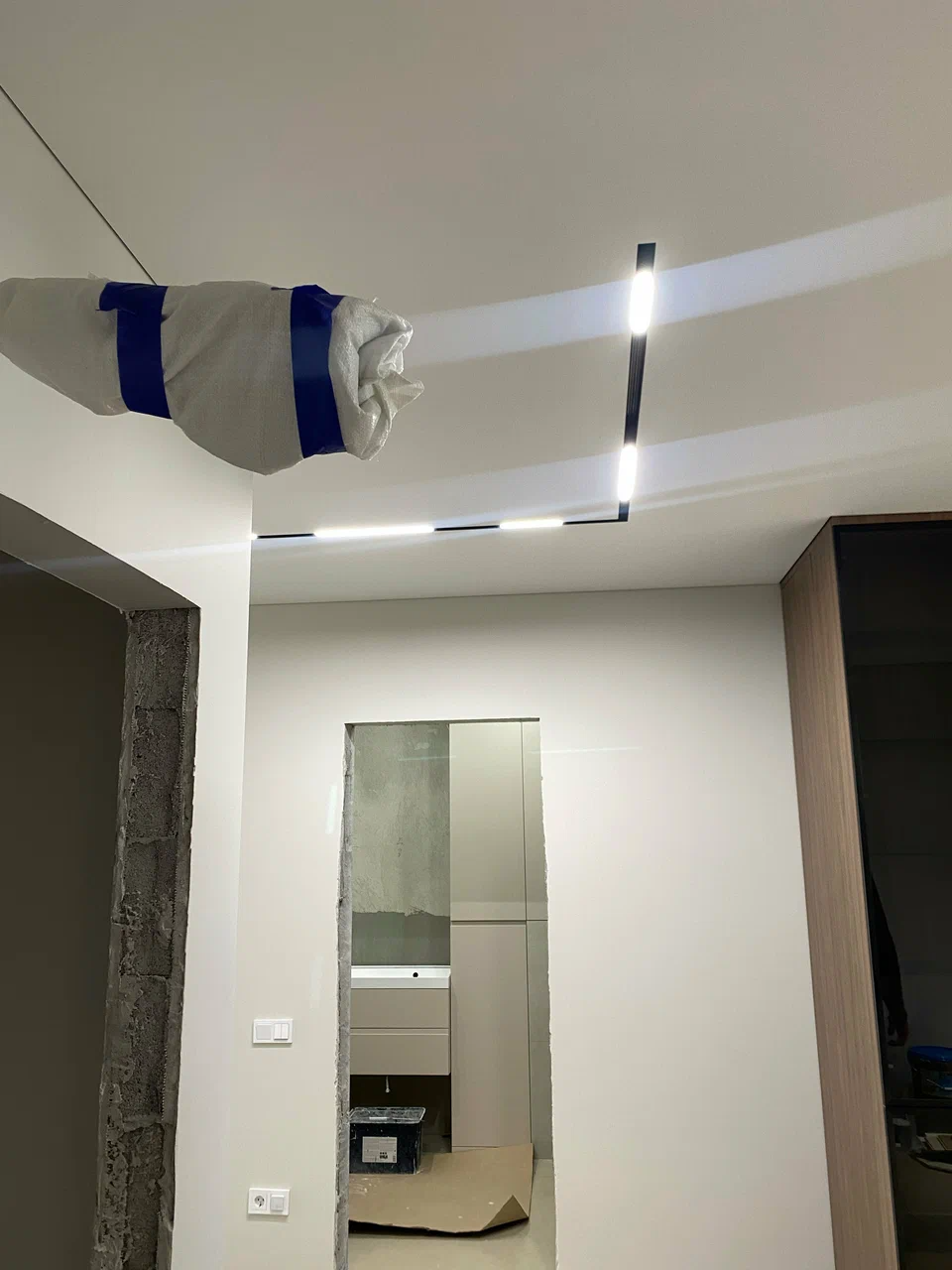 Огромная благодарность компании «Потолки Всем». Заказывали освещение в двух ванных комнатах, три потолочных карниза с подсветкой и световые линии в коридоре. Все материалы действительно качественные, без дешёвых замен и неожиданных сюрпризов.Понравилось, что ребята предложили несколько вариантов решений, включая удобные беспроводные проходные выключатели — в итоге именно их и использовали в проекте. Работу выполнили аккуратно и в оговорённые сроки. Однозначно рекомендую!